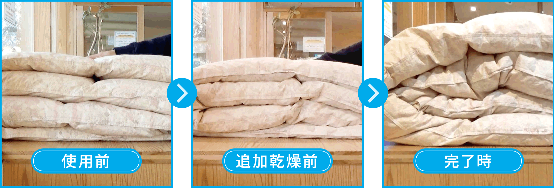 乾燥後お布団の中が湿っている時や羽毛が固まっている場合には、